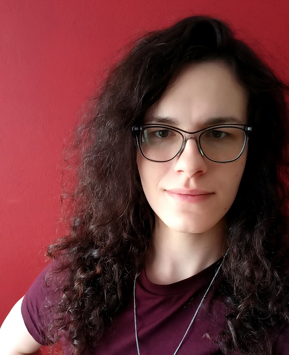 Narodila se v Ostravě, studovala na Univerzitě Palackého v Olomouci. Nyní žije v Praze, kde učí na ZŠ prof. Švejcara informatiku. Pomáhá Pirátům na Dvanáctce se sociálními sítěmi. Věnuje se spolku Trans*parent, kde působí ve výboru. Dále je spoluzakladatelkou regionální buňky Trans*parent Ostrava. Má zkušenosti jako lektorka a animátorka na Pevnosti Poznání a PDF UPOl. Miluje hudbu, a proto působila v UP AIR jako moderátorka a členka PR týmu. Ráda pije čaj, brnká na ukulele, hraje deskovky a je také poloprofesionální emoční troskou.